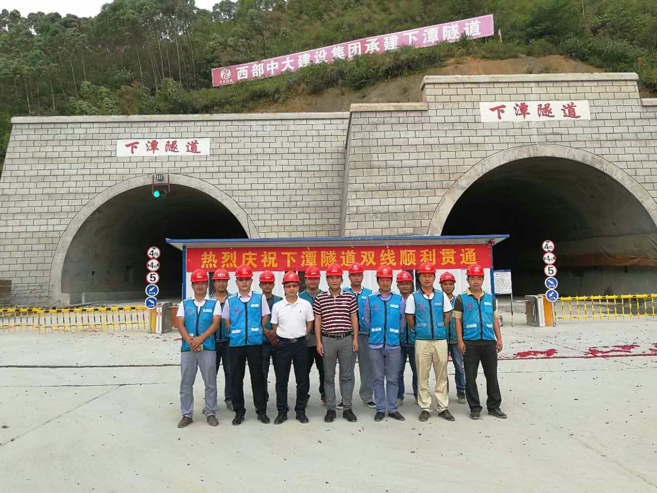 下潭隧道左线洞长1070米,右线长1075米,最大埋深170米,设计净空为5米,双向四车道,设计时速100公里/小时,为分离式小净距长隧道。该隧道是广西梧州地区连接广东广佛肇高速公路主要通道之一,同时也是梧州环城项目关键控制性工程,隧道的顺利贯通,将大大缩短两广地区的距离,提速了两广地区的融合发展。